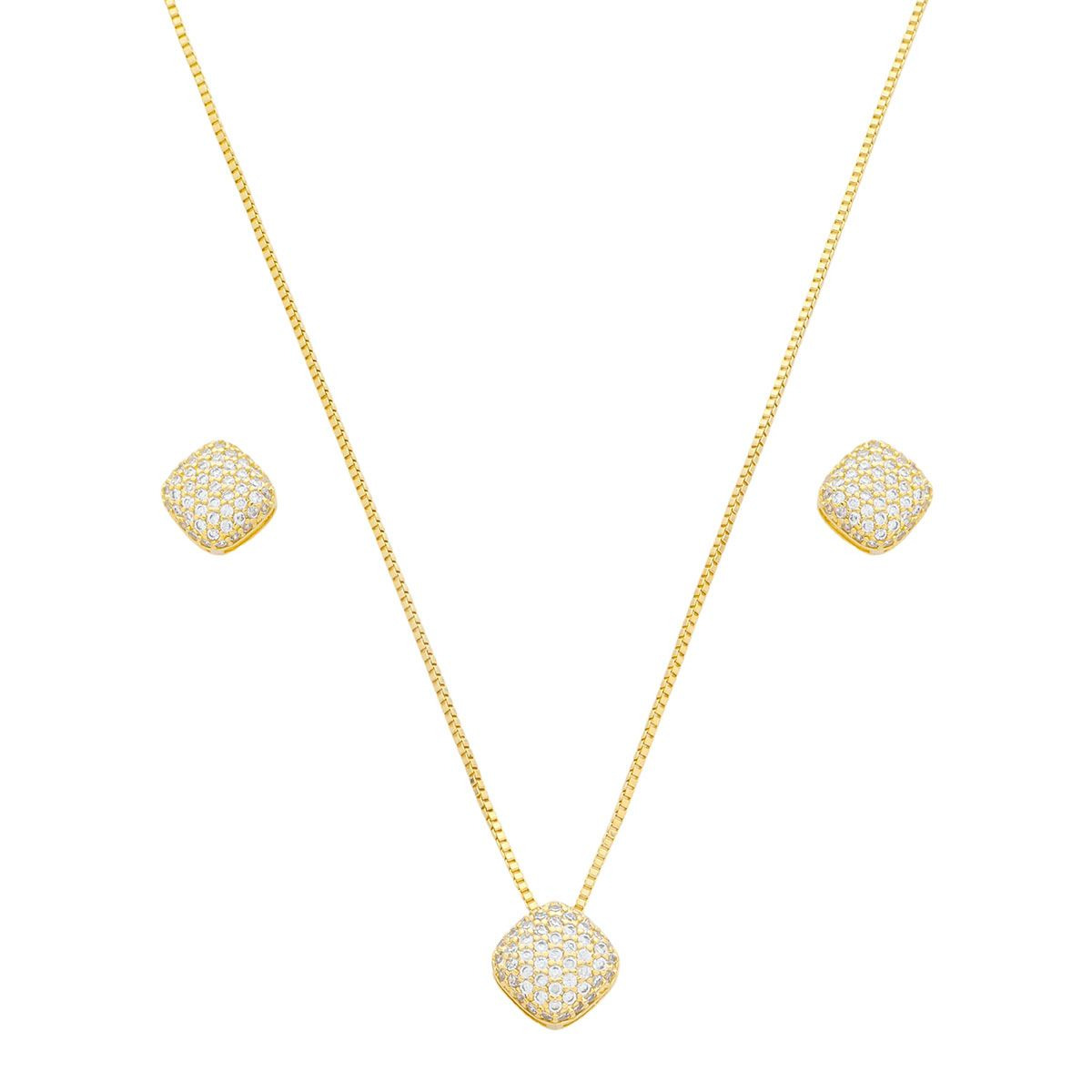 - Brinco e pingente com zircônia;