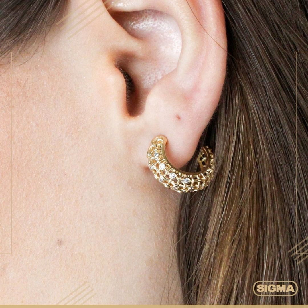 Argola banhada em ouro 18k cravejada com zircônias e 3 meses de garantia.