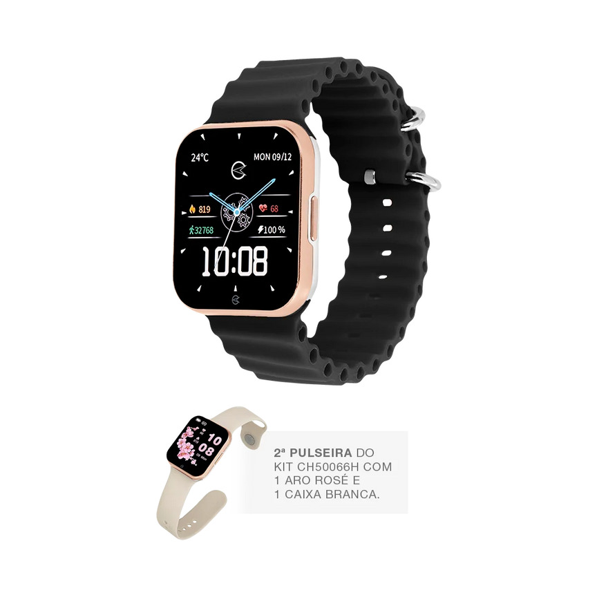 A Champion desenvolve seus relógios dentro dos principais padrões de qualidade e tecnologia, com coleções exclusivas e inovadoras. O mais completo e totalmente personalizável: São 139 mostradores e você pode criar o seu. Aros disponíveis em 10 cores para você escolher. Troca-pulseiras (acompanha 2 pulseiras). Novas funções inteligentes para o seu dia a dia. ¿¿¿ Notificações ¿¿¿ Mostrador personalizável ¿¿¿ Contador de passos e calorias ¿¿¿ Modo esportes (+20 modalidades) ¿¿¿ Medidor de frequência cardíaca e de pressão arterial ¿¿¿ Oxigenação no sangue ¿¿¿ Exercícios respiratórios ¿¿¿ Controle do sono ¿¿¿ Controle de ciclo menstrual ¿¿¿ Controle de música ¿¿¿ Disparador remoto para foto ¿¿¿ Clima em tempo real ¿¿¿ Modo ¿¿¿encontre o celular¿¿¿ ¿¿¿ Despertador, cronômetro, timer, modo não perturbe ¿¿¿ Compatível com Android e Apple iOS ¿¿¿ Bateria com duração de 3 a 5 dias ¿¿¿ Acompanha carregador próprio para o smartwatch