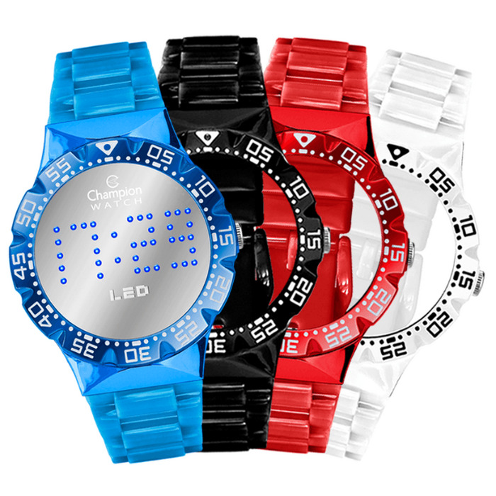O Champion Troca Pulseiras Digital vem com uma caixa metálica de 42mm e 4 pulseiras de plástico em cores incríveis, para você variar e combinar com qualquer look e ocasião.